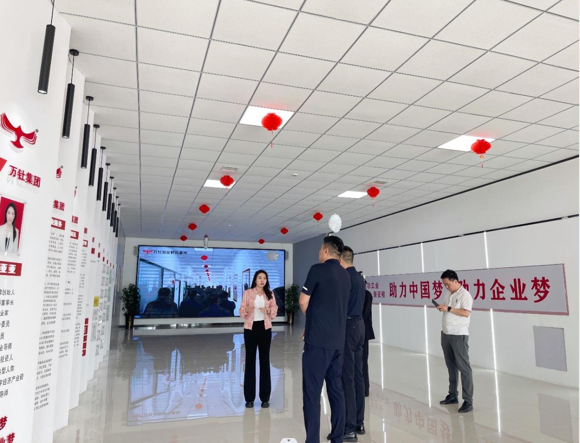 在白亚亚的带领下,大家实地参观了万钍智慧厅、园区发展建设的配套设施、高标准化、智能化的会议室等。