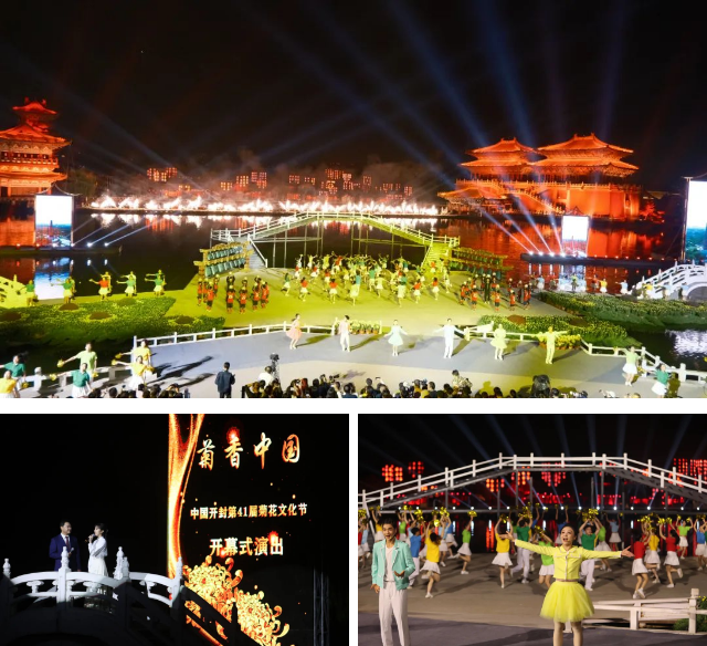秋菊如诗,宋韵如词,开封以独特的姿态和整个中国、乃至世界合成一首无比动人的交响。主题歌旋律响起,天地菊香、灿烂金黄,开幕式圆满成功!