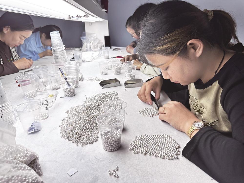 “养殖珍珠蚌只是一方面,养殖行业时间成本高,收益季节性强。但珍珠加工可不分季节,技术好了,能一直有订单。”姬海涛告诉记者,姬庄村和珍珠蚌养殖企业目前的合作中,除了养殖,还可承接工厂订单制作,如果村民们能学会珍珠加工技艺,在村里就有工作干,在家门口就能赚到钱。