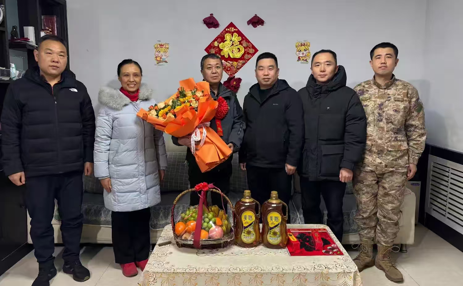 近日,河北省邯郸市爱国拥军企业——河北晨通环保科技有限公司总经理刘少龙联合邯郸市复兴区退役军人事务局、复兴区人民武装部、彭家寨乡退役军人服务站、前百家退役军人服务站等单位相关负责同志,到现役军人李伟华家中进行走访慰问,为其家人送去了慰问品和新春问候。