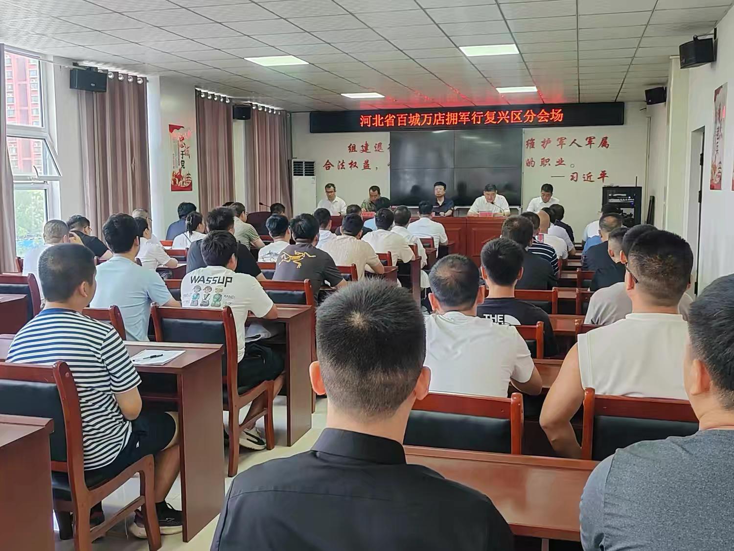 为庆祝中国人民解放军建军98周年、世界反法西斯战争和抗日战争胜利80周年,深入贯彻习近平总书记关于双拥工作的重要论述,7月21日上午9时,复兴区在退役军人社团组织活动中心举办“河北省百城万店拥军行复兴区分会场”活动启动仪式,为军人军属、退役军人及其他优抚对象提供优先优惠优待服务,进一步巩固和发展军政军民团结。