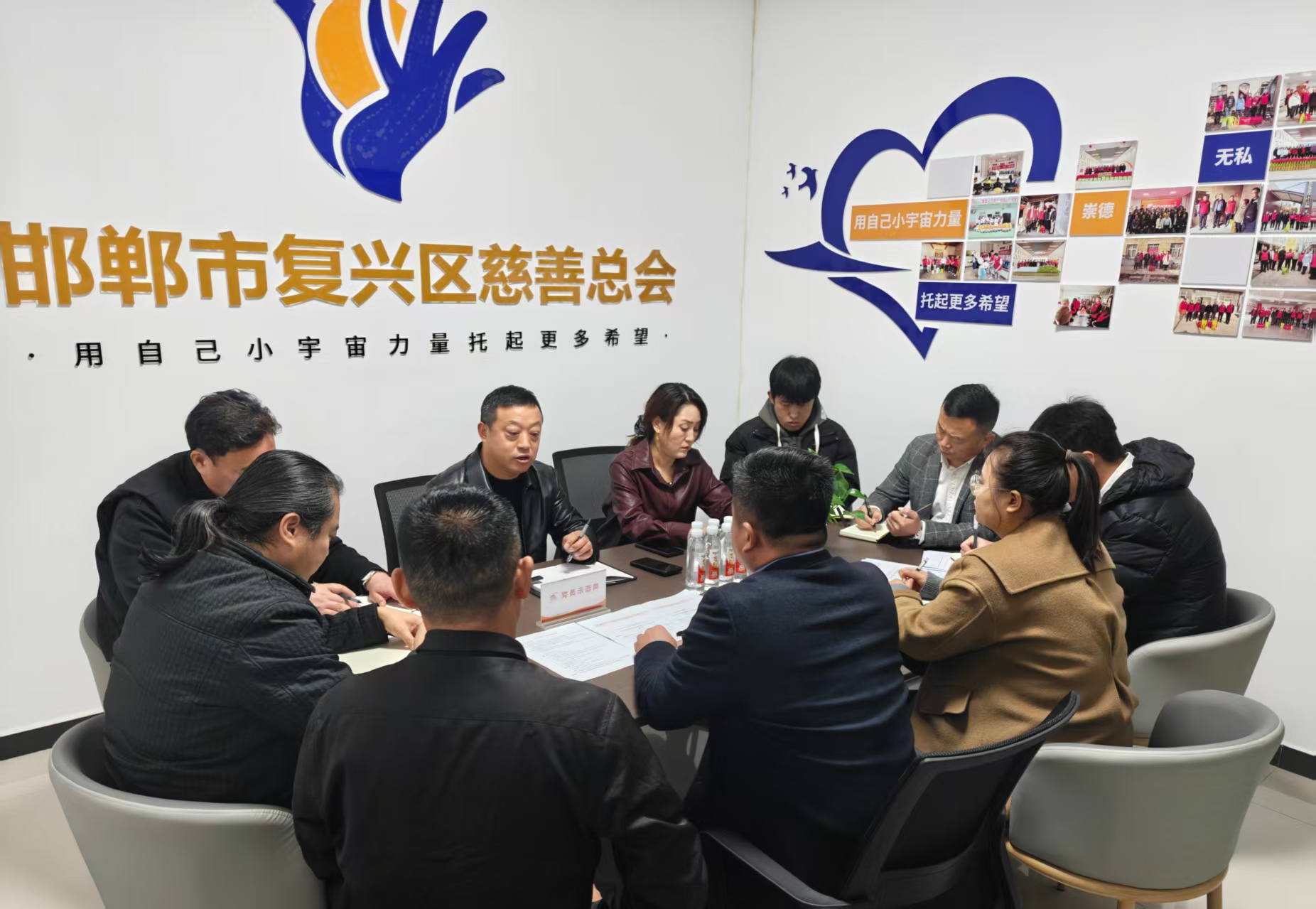 2025年11月13日上午,中国校园健康行动河北邯郸工作中心召开工作部署和动员大会,会议在邯郸市复兴区慈善总会举行,中心全体人员参加,秘书长许世新主持会议。